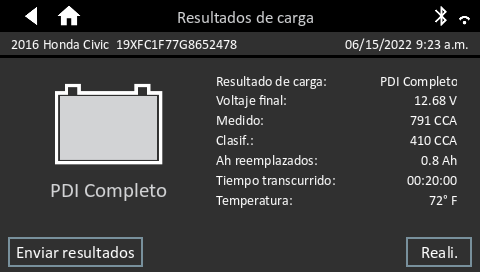 6. Una vez que se completen las pruebas previas, la herramienta comenzará a cargar la batería.