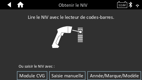 4. Ensuite, vous capturerez le VIN via le lecteur de code-barres sans fil, en saisissant manuellement le VIN ou en sélectionnant l’année, la marque et le modèle du véhicule.