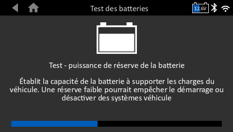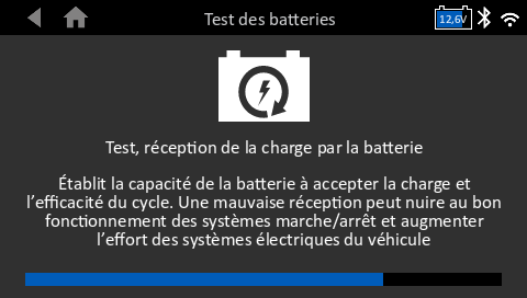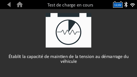 Utilisez la charge de diagnostic pour charger une batterie installée et connectée dans un véhicule à l’aide de paramètres de test déterminés par le VIN du véhicule ou l’année, la marque et le modèle du véhicule testé.