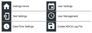 to access the test setting defaults. Tap the boxes or icons to change the values.