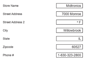 Use the onscreen keypad to enter the store name, address, and phone number.