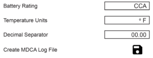 Access default Shop Information including Store Name, address, and phone number. Also access battery test defaults including rating, temperature units, and decimal separator. Use also to adjust the tester date and time settings.