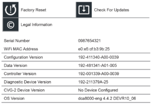 Use Version Information to display WiFi connection data the Diagnostic Device, and Device software version information.