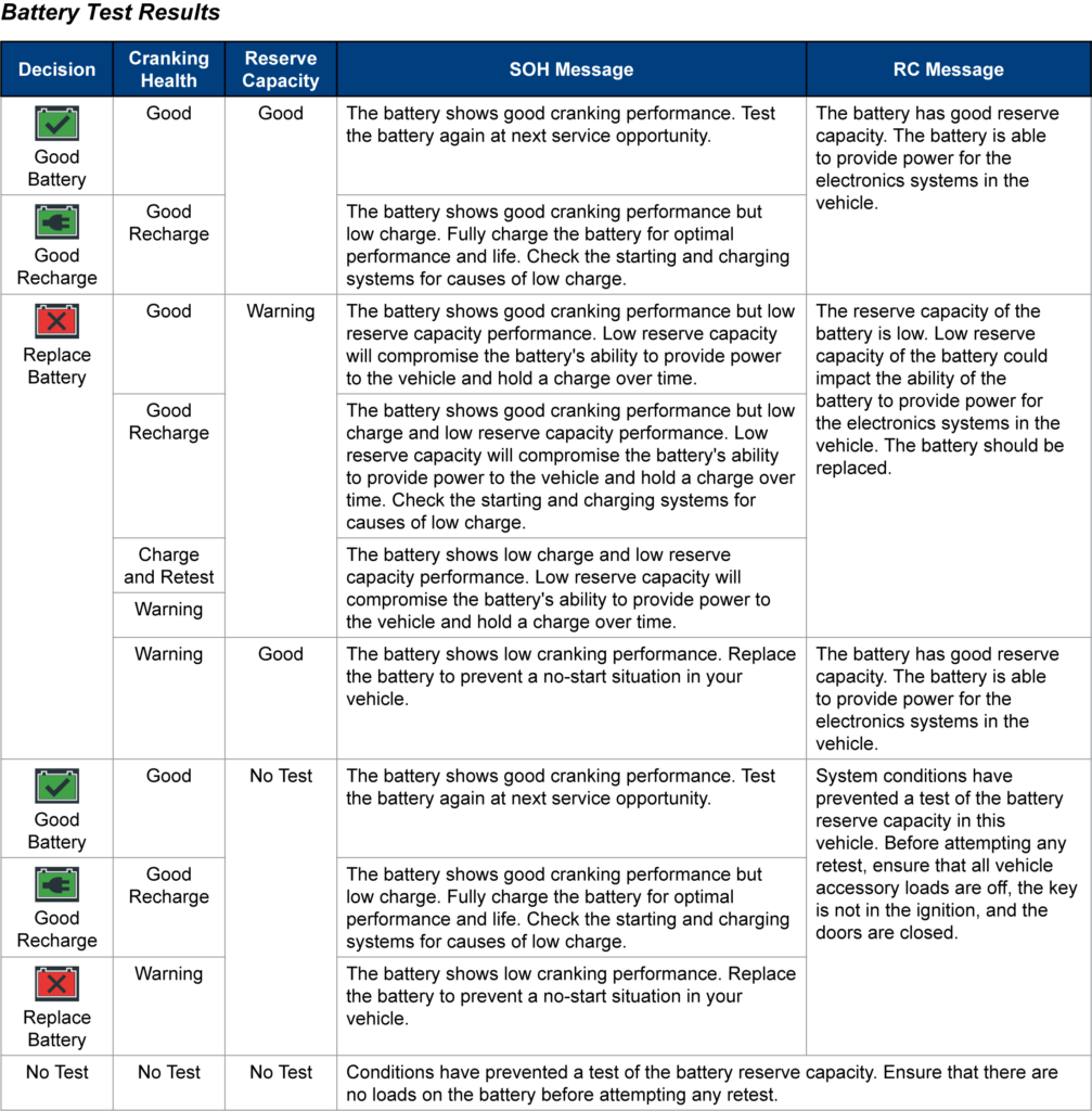 Test Results Decision Tables Updated on October 26, 2021 Related Articles Safety Precautions Main Menu Initial Setup Connections Charging Unit Front / Back